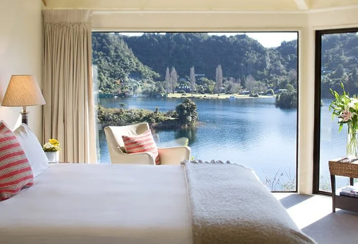 Overlooking the sparkling waters of Lake Tarawera, Solitaire Lodge offers elegant luxury and complete relaxation just a short drive from Rotorua. The lodge’s contemporary design blends seamlessly with its natural surroundings, providing breathtaking views from every suite. Guests can enjoy gourmet cuisine, featuring fresh local produce and fine New Zealand wines, as well as private lake excursions, bathing in nearby thermal springs, fishing, kayaking, or helicopter adventures over volcanic landscapes. With warm hospitality and exceptional attention to detail, Solitaire Lodge is the ideal retreat for those seeking peace, privacy, and refined indulgence.