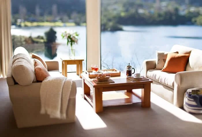 Solitaire Lodge features nine luxurious suites designed to harmonise contemporary comfort with the natural beauty of Lake Tarawera and Mount Tarawera. Each suite captures the essence of tranquillity, with floor-to-ceiling windows framing panoramic lake and mountain views.